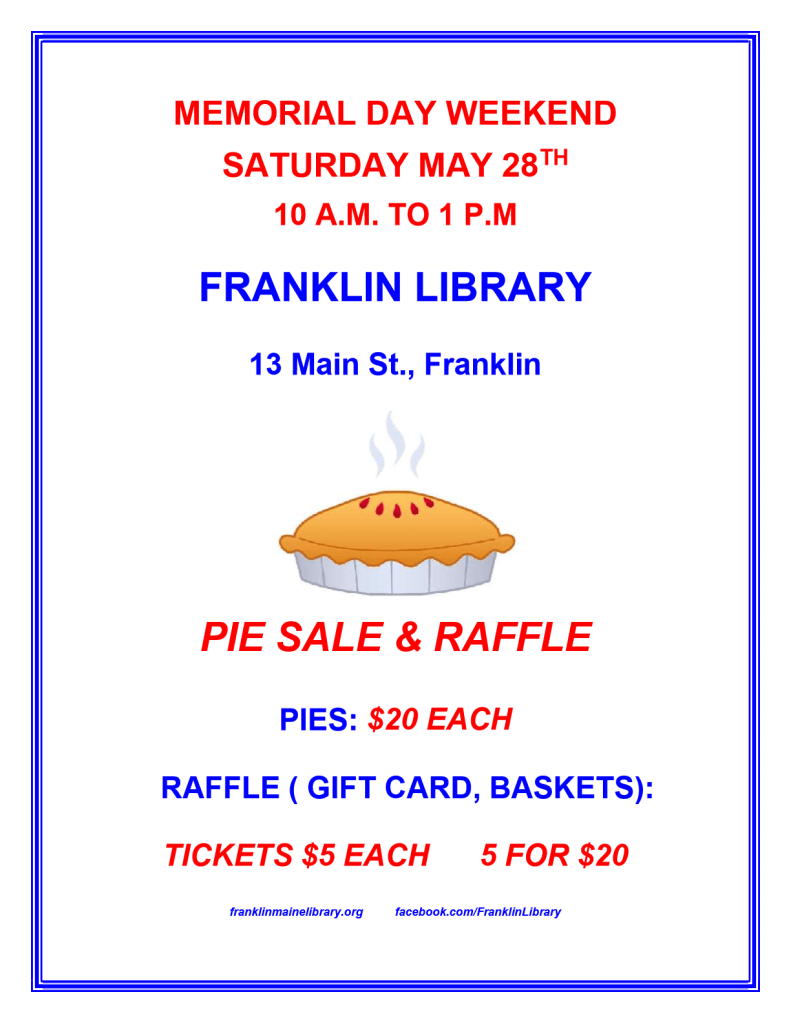 Celebrate Memorial Day weekend with a homemade pie. Buy a chance to win a Hannaford’s gift card or a beautiful gift basket. From 10 a.m. to 1 p.m.