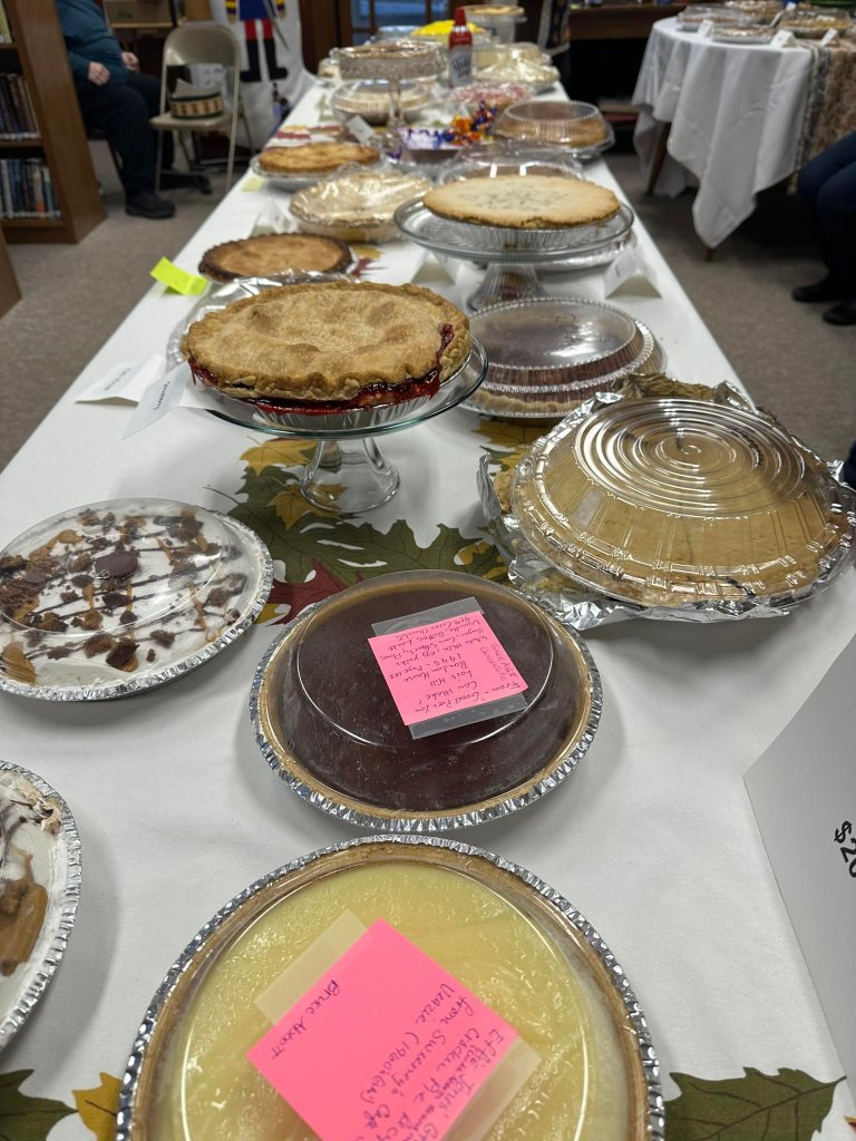LIBRARY ANNUAL PIE SALE! HOMEMADE PIES $20 EACH. TUESDAY NOV. 26TH: 4:00 UNTIL ALL PIES SOLD. IF YOU WOULD LIKE TO BAKE A PIE FOR THE SALE, CALL 667-8915.